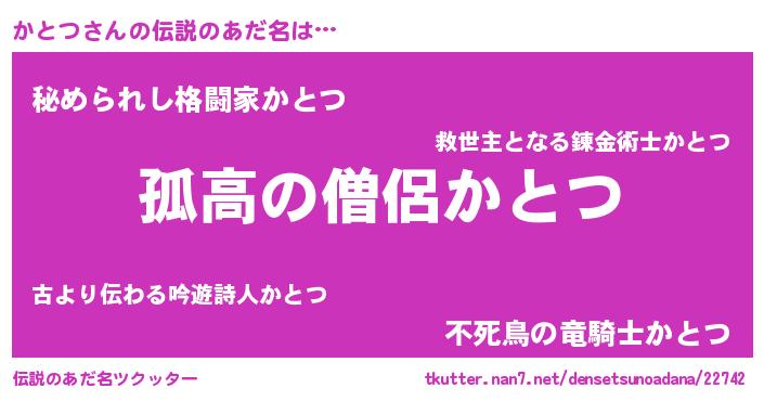| 男性向けラノベタイトル風あだ名 | 『はたらくかとつさま!』『緋弾のカトツ』 |