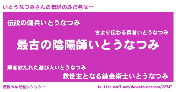 | ファンタジー風あだ名 | 『エターナルイトウナツミー』 |