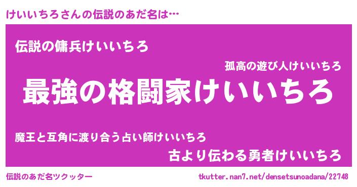 | 女子向けラノベタイトル風あだ名 | 『けいいちろストレイドッグス』 |