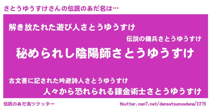 | ポケモン風あだ名 | 『サトウダネ』『ヒサトウユウスケ』 |