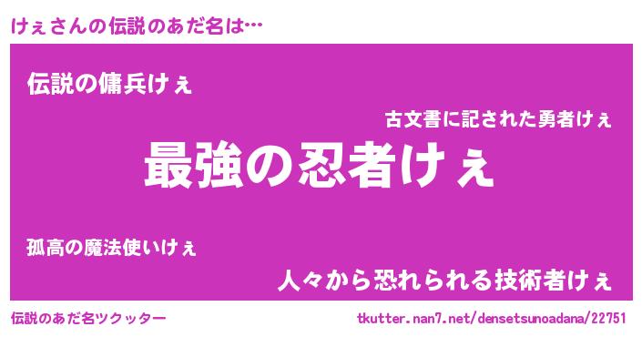 | ヒーロー風カッコイイあだ名 | 『ウルトラけぇマン』『スーパーケェ』 |