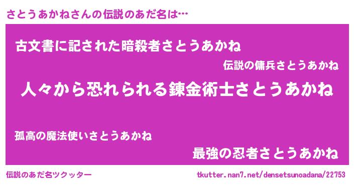 | 意味不明あだ名 | 『住所不定無職さとうあかね(71歳)』 |