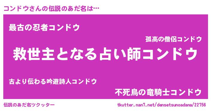 | 意味不明あだ名 | 『自称コンドウ』『コンドウフォーエバー』 |