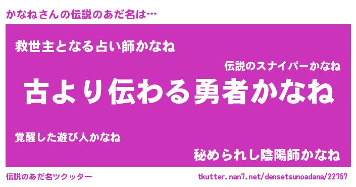 | ヒーロー風カッコイイあだ名 | 『ネオカナネ』『超時空戦士カナネ』 |
