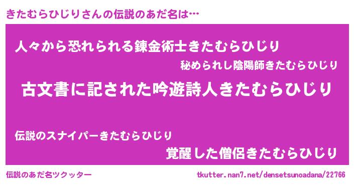 | 意味不明あだ名 | 『永久保存きたむらひじり』 |