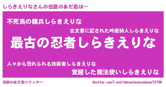 | 意味不明あだ名 | 『自称しらきえりな』 |