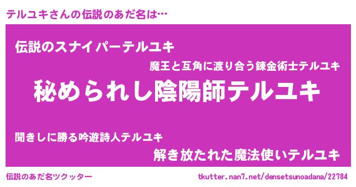 | 意味不明あだ名 | 『自称テルユキ』『テルユキフォーエバー』 |