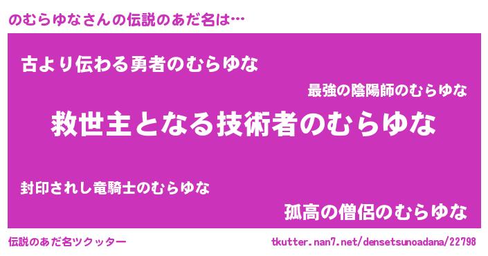 | 女子向けラノベタイトル風あだ名 | 『死神のむらゆなの再婚』 |