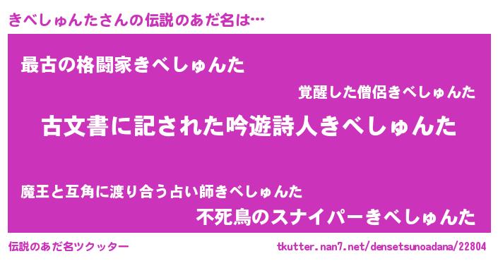 | ヒーロー風カッコイイあだ名 | 『ネオキベシュンタ』『仮面キベダー』 |