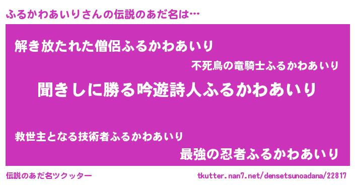 | 意味不明あだ名 | 『永久保存ふるかわあいり』 |