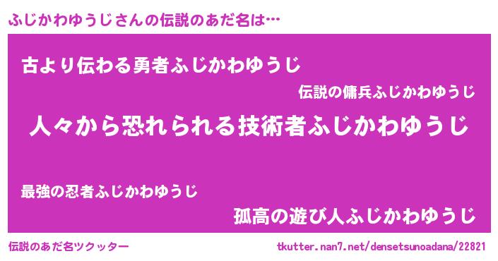 | ヘコむあだ名 | 『ふじかわゆうじ(笑)』『ふじ太郎』 |