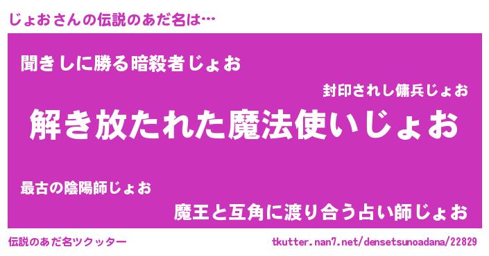 | ヒーロー風カッコイイあだ名 | 『仮面ジョダー』『超時空戦士ジョオ』 |