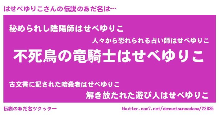 | 男性向けラノベタイトル風あだ名 | 『ハセベユリコアートオンライン』 |