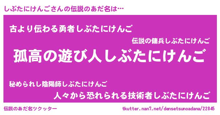| 意味不明あだ名 | 『住所不定無職しぶたにけんご(74歳)』 |