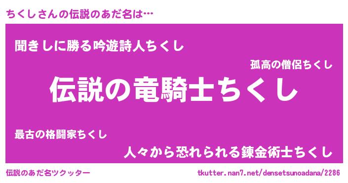 | 男性向けラノベタイトル風あだ名 | 『魔弾の王とちくし』『ちくしの憂鬱』 |