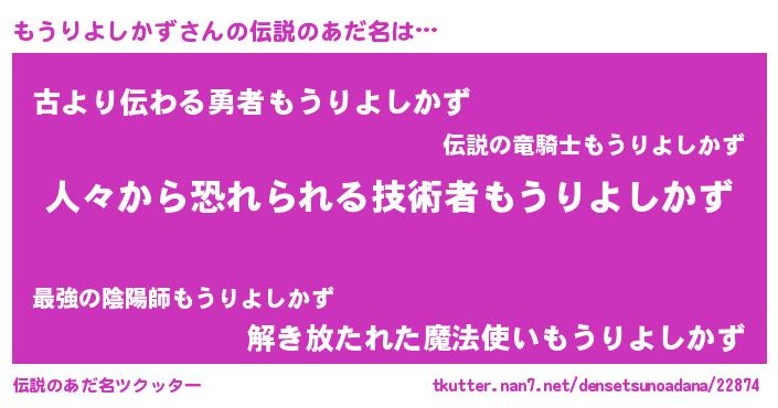 | 意味不明あだ名 | 『住所不定無職もうりよしかず(7歳)』 |
