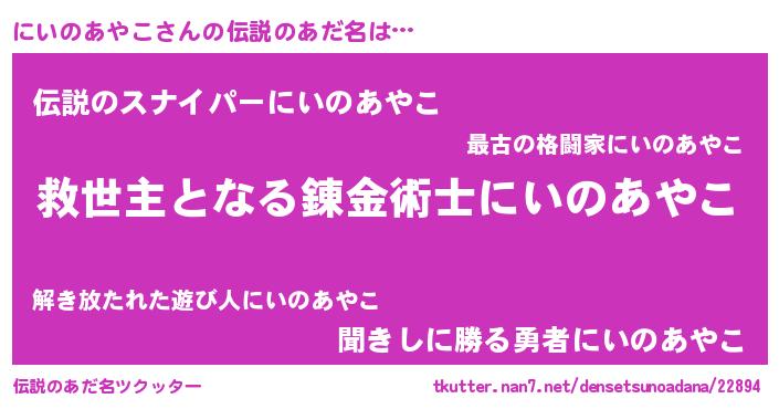 | 意味不明あだ名 | 『自称にいのあやこ』 |
