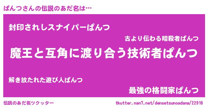 | 女子向けラノベタイトル風あだ名 | 『ぱんつの玉の輿計画!』『ぱんつ恋絵巻』 |
