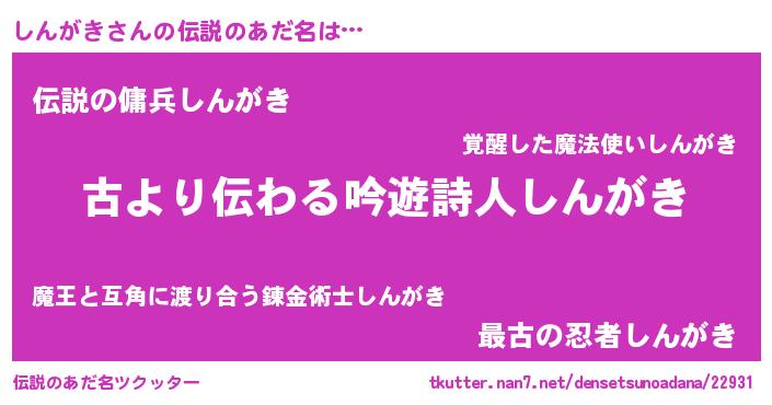 | 男性向けラノベタイトル風あだ名 | 『しんがきという概念が存在しない退屈な世界 』 |