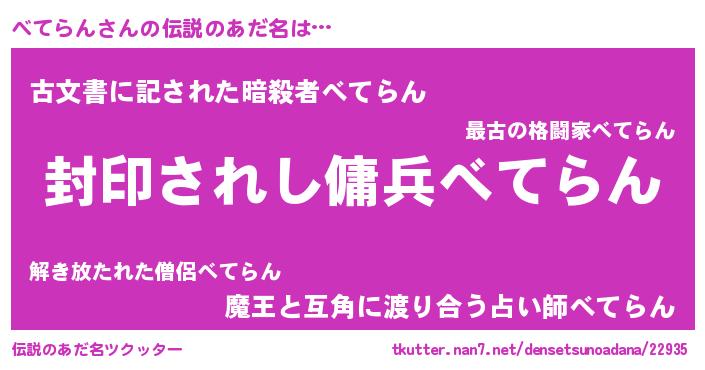 | 胡散臭い通販商品みたいなあだ名 | 『億万長者になれる水晶球…その名も「べてらん」』 |