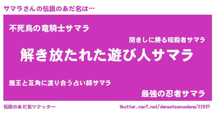 | ヒーロー風カッコイイあだ名 | 『仮面サマダー』『銀牙騎士サマ』 |