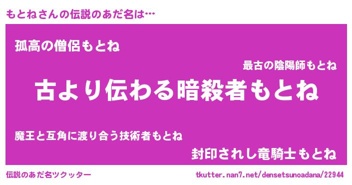 ヒーロー風カッコイイあだ名 | 『ネオモトネ』『暗黒騎士モト』 |