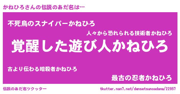 | 男性向けラノベタイトル風あだ名 | 『かねひろ~年齢イコール彼女いない歴の魔法使い~』 |