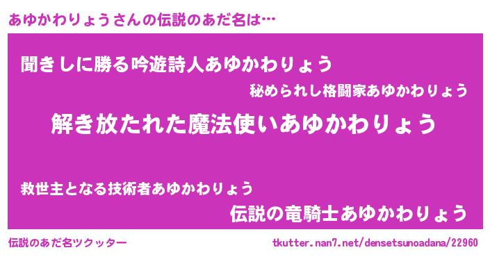 | 意味不明あだ名 | 『とにかく怪しいあゆかわりょう』 |