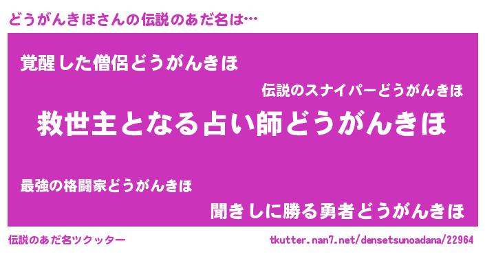 | ヘコむあだ名 | 『どう太郎』『どうがんきほ(遠い目)』 |