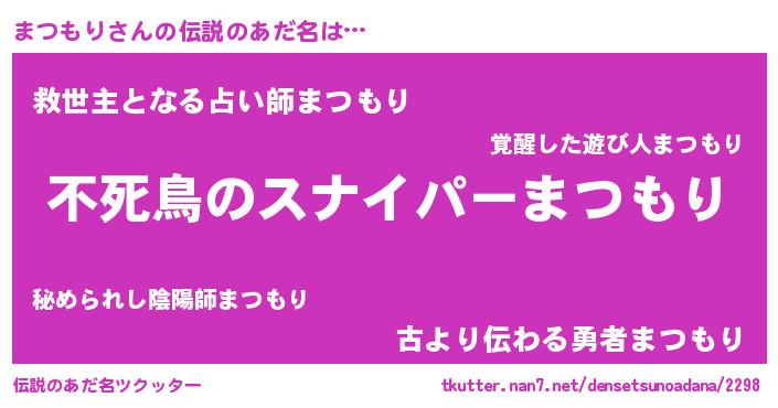 | 胡散臭い通販商品みたいなあだ名 | 『モテモテ間違いなし霊験あらたかなお札…その名も「まつもり」』 |