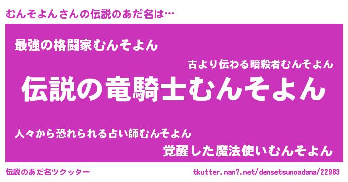 | 意味不明あだ名 | 『ペロリンむんそよん』『自称むんそよん』 |