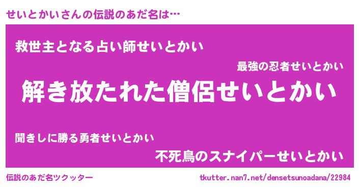 | 意味不明あだ名 | 『とにかく怪しいせいとかい』 |