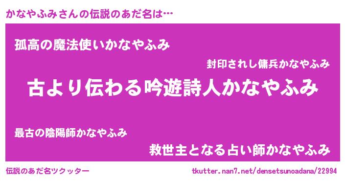 | ヘコむあだ名 | 『かなやふみ(笑)』『かなお』 |
