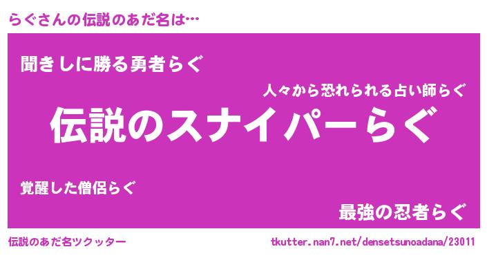 | 胡散臭い通販商品みたいなあだ名 | 『必ず成功する霊験あらたかなお札…その名も「らぐ」』 |