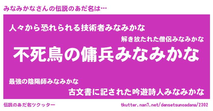 | ヒーロー風カッコイイあだ名 | 『スーパーミナミカナ』『仮面ミナダー』 |