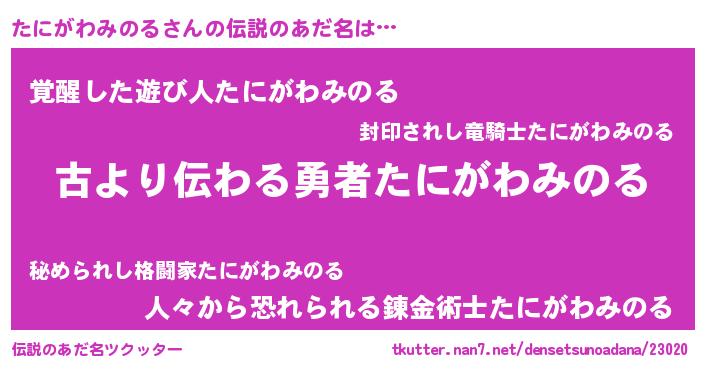| 意味不明あだ名 | 『永久保存たにがわみのる』 |