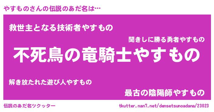 | 意味不明あだ名 | 『住所不定無職やすもの(9歳)』 |