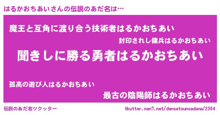 | 男性向けラノベタイトル風あだ名 | 『はるかおちあいという概念が存在しない退屈な世界 』 |