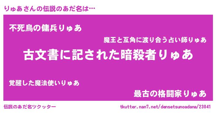 | ヘコむあだ名 | 『りゅあ(苦笑)』『りゅにゅー』 |