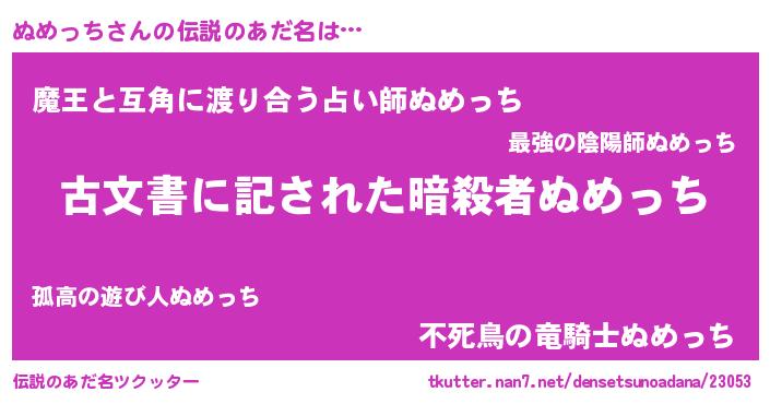 | 意味不明あだ名 | 『永久保存ぬめっち』『自称ぬめっち』 |