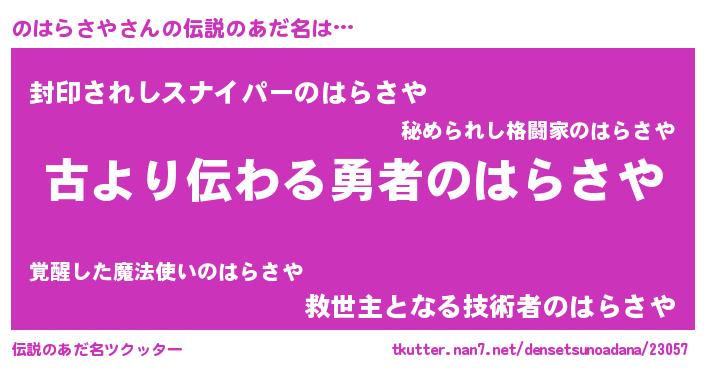 | ヒーロー風カッコイイあだ名 | 『ネオノハラサヤ』『最強戦士ノハラサヤ』 |