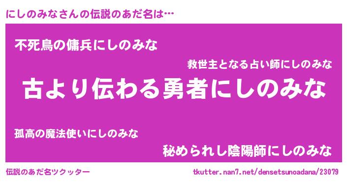 | ヒーロー風カッコイイあだ名 | 『サイバー戦士ニシノミナ』 |