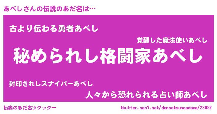 | ヒーロー風カッコイイあだ名 | 『ウルトラあべしマン』『ネオアベシ』 |