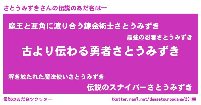 | 意味不明あだ名 | 『自称さとうみずき』 |
