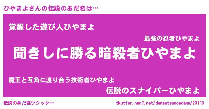 | 男性向けラノベタイトル風あだ名 | 『ひやまよという概念が存在しない退屈な世界 』 |