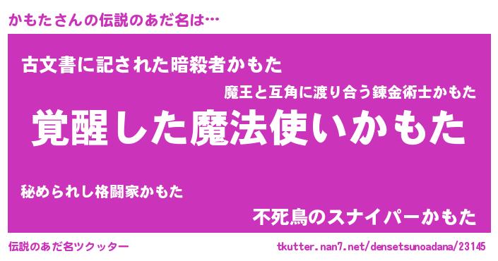 | ヒーロー風カッコイイあだ名 | 『幻影騎士カモ』『最強戦士カモタ』 |