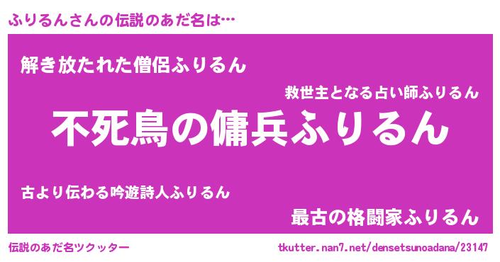| ヒーロー風カッコイイあだ名 | 『仮面フリダー』『スーパーフリルン』 |