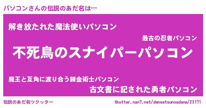 | 胡散臭い通販商品みたいなあだ名 | 『モテモテ間違いなし霊験あらたかなお札…その名も「パソコン」』 |