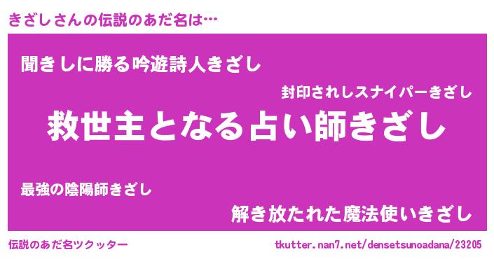 | ヒーロー風カッコイイあだ名 | 『最強戦士キザシ』『友情の使者きざし』 |