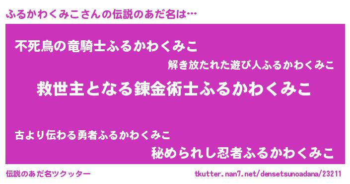 | 男性向けラノベタイトル風あだ名 | 『ノーゲーム・ノーフルカワクミコ』 |